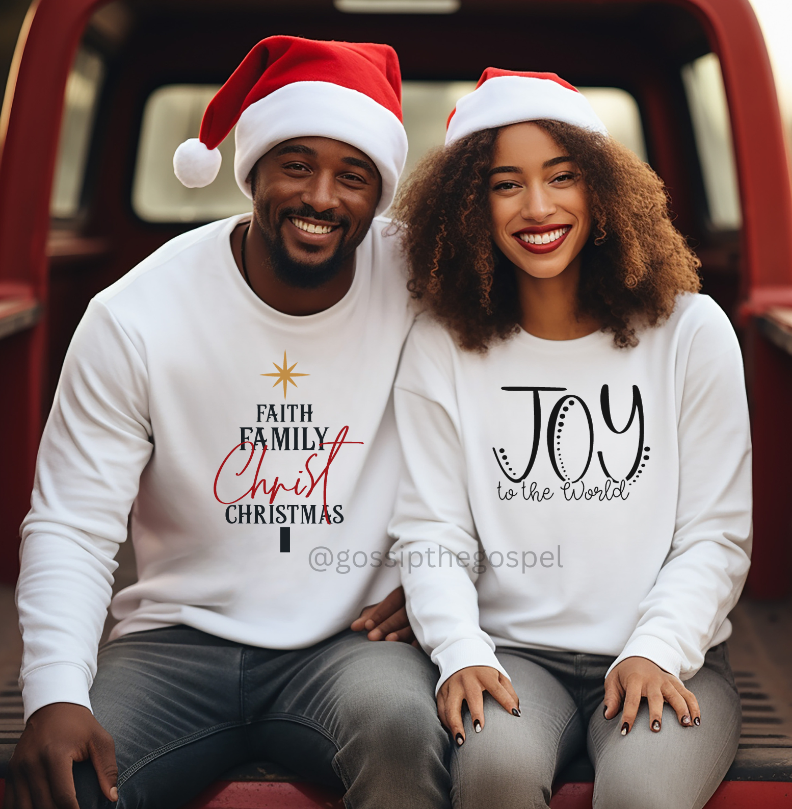 Faith Family Christmas + Joy To The World White Crew Neck Sweater