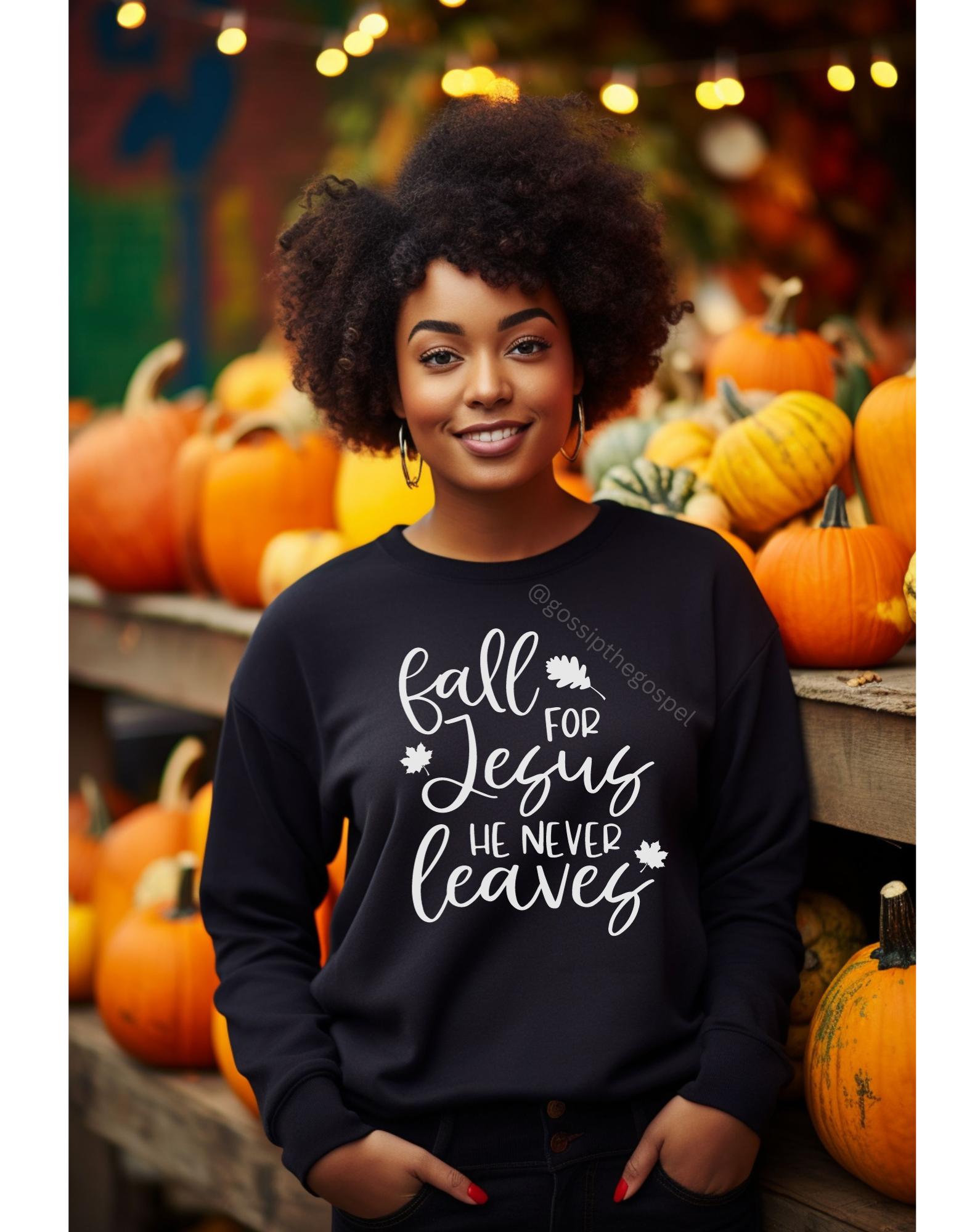 Fall For JESUS, He Never Leaves Comfy, Cozy Sweater