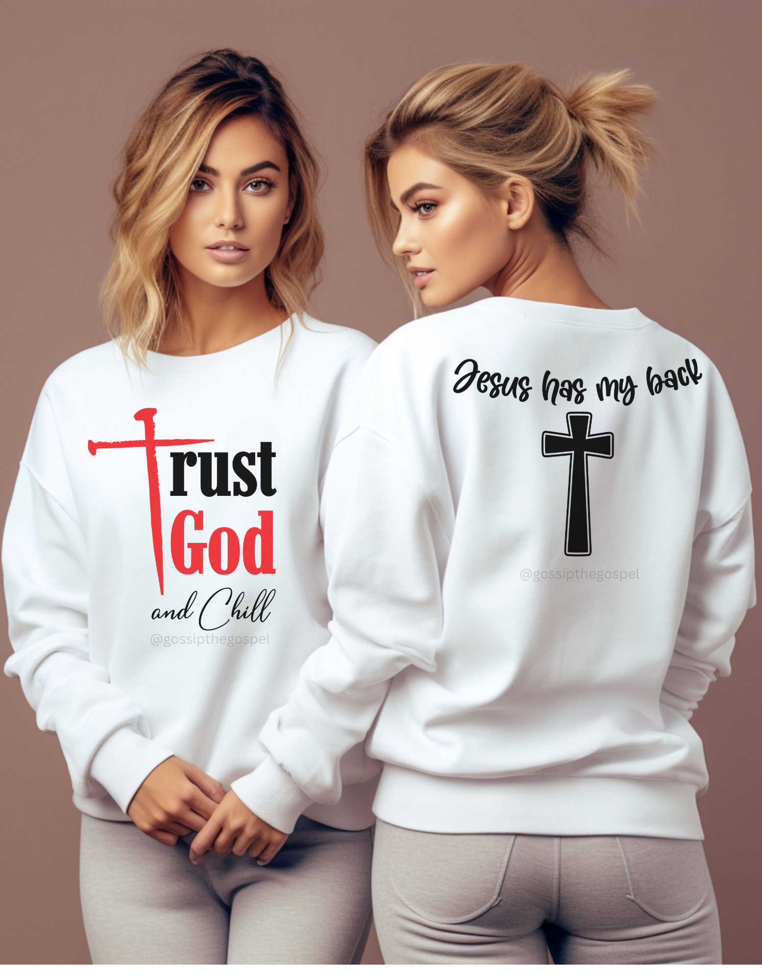 Trust GOD And Chill JESUS Has My Back White Crew Neck Sweater