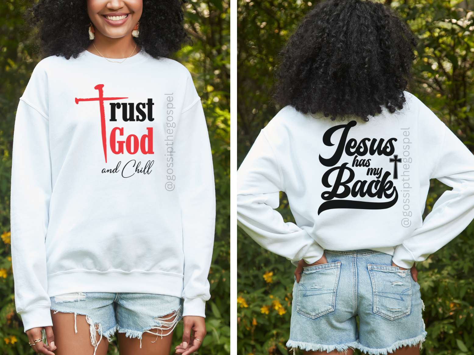 Trust GOD and Chill + JESUS has your back cozy Crewneck StyleB